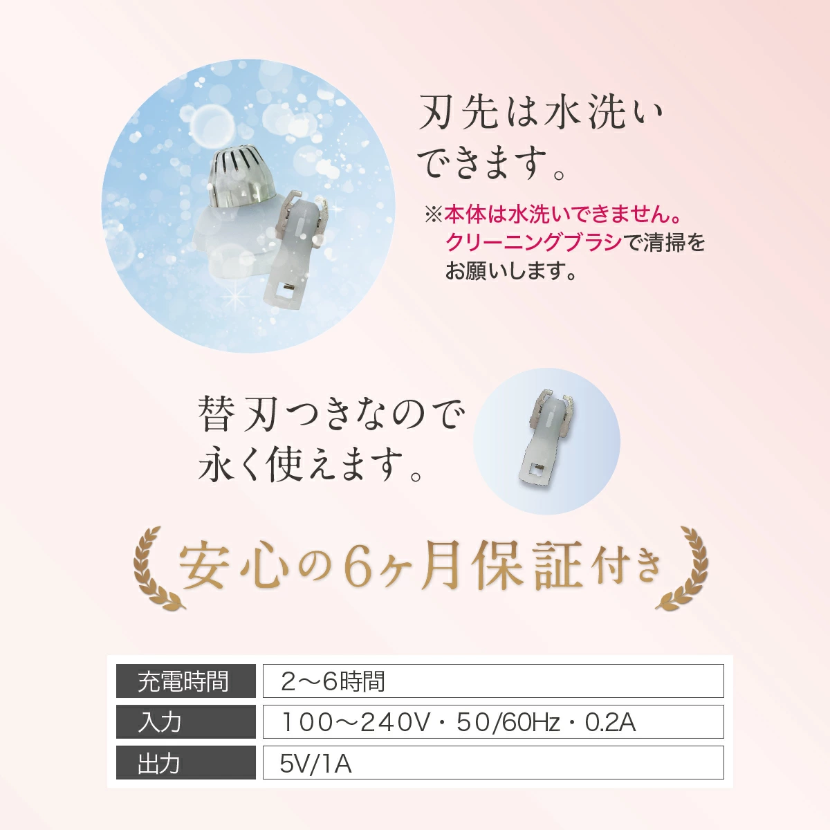 ペンシル形状のヘッド先端に「ミニ回転刃」を搭載し、肌を守りながら毛をカットできます。