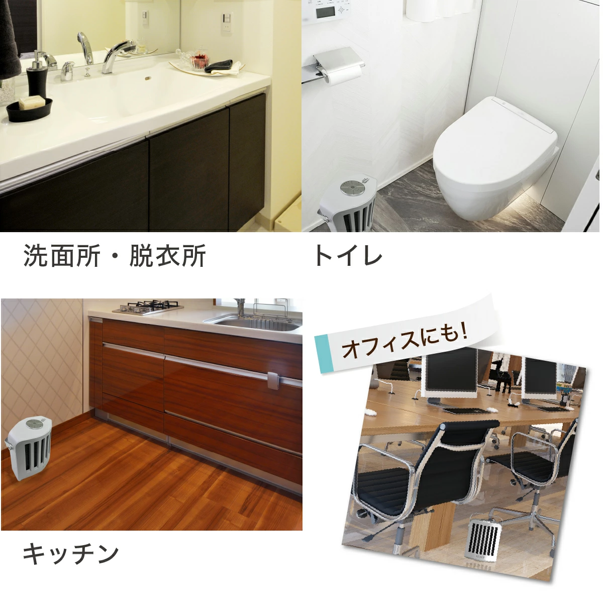 トイレや脱衣所、オフィスのデスク(足元)のような狭い場所にもぴったりです。