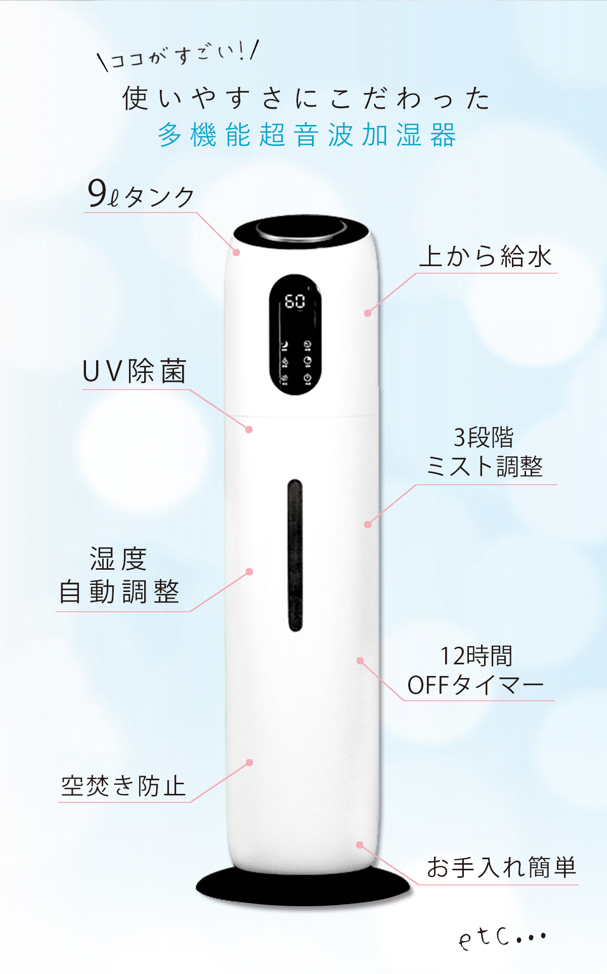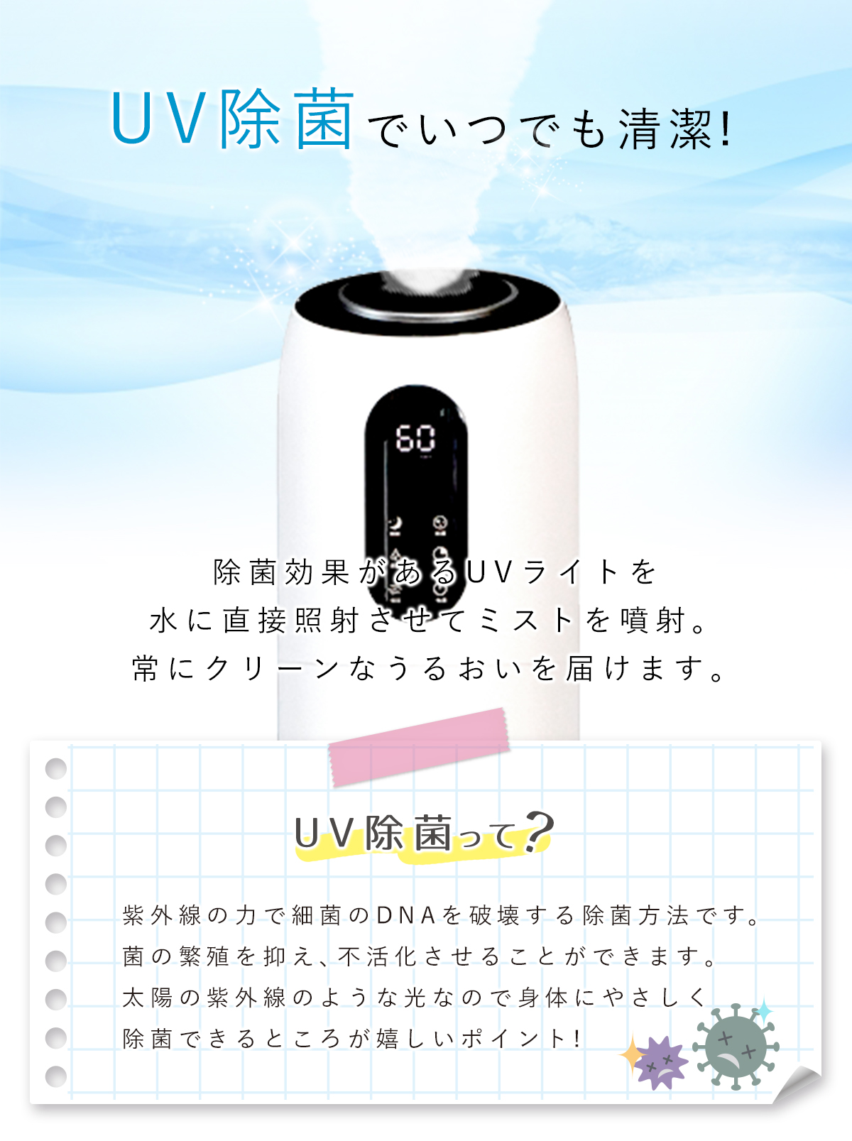 スピード加湿!大容量タンク搭載 UV除菌でクリーンなうるおいを。在宅ワークにぴったりのリモコン操作&大容量ミスト 超音波 おしゃれ 床置き アロマ オフィス 部屋 タイマー 静音 省エネ