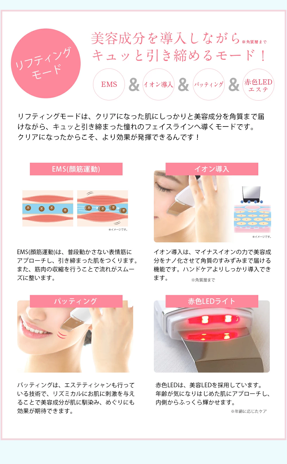 美容成分を導入しながら、キュッと引き締めるモードです。(※角質層まで)