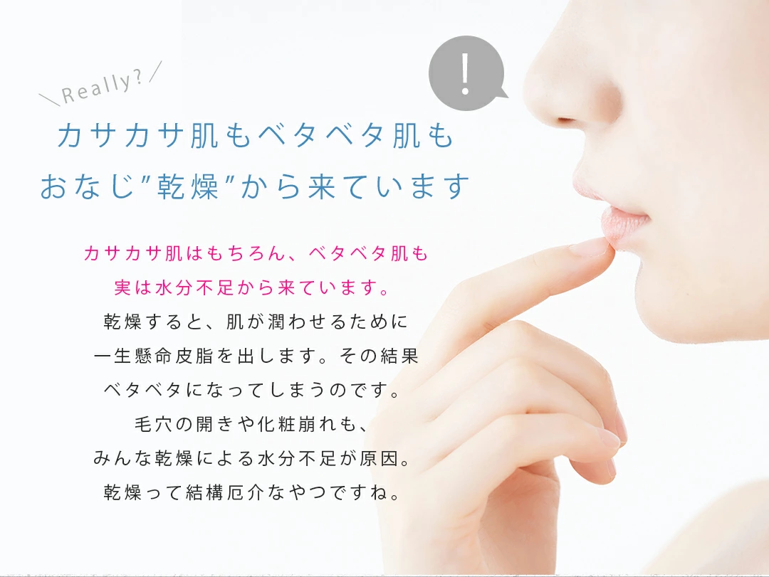 「カサカサ肌」はもちとんですが「ベタベタ肌」も、乾燥によって過剰に皮脂が分泌されているために起こっている症状なんです。
