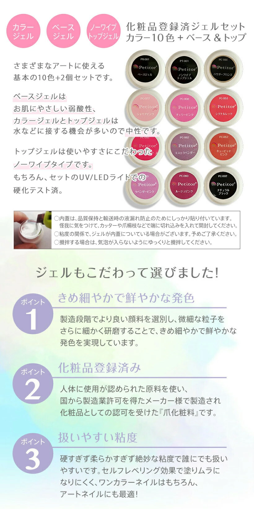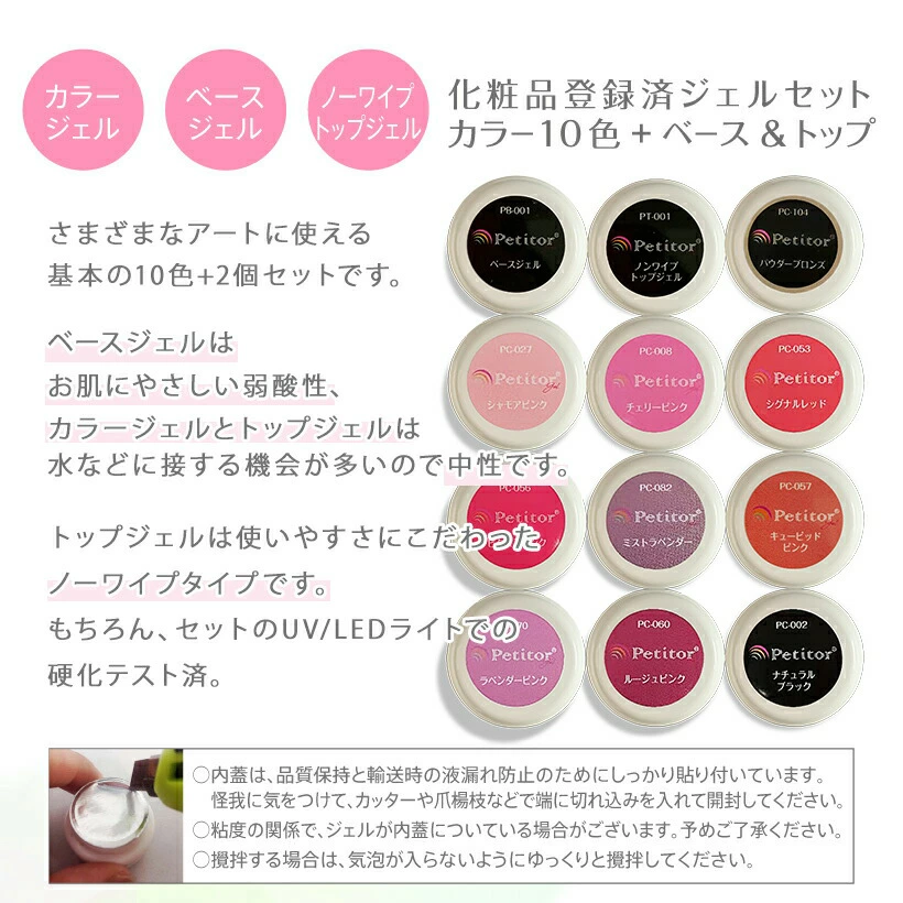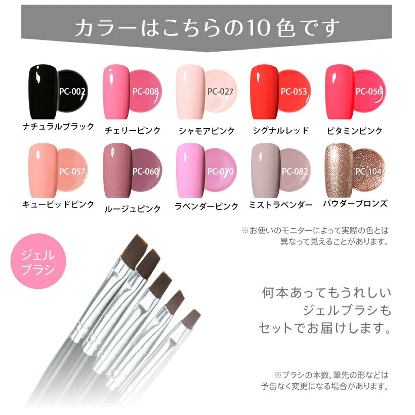 カラージェル10色セット、ベースジェル、ノーワイプトップジェルなど