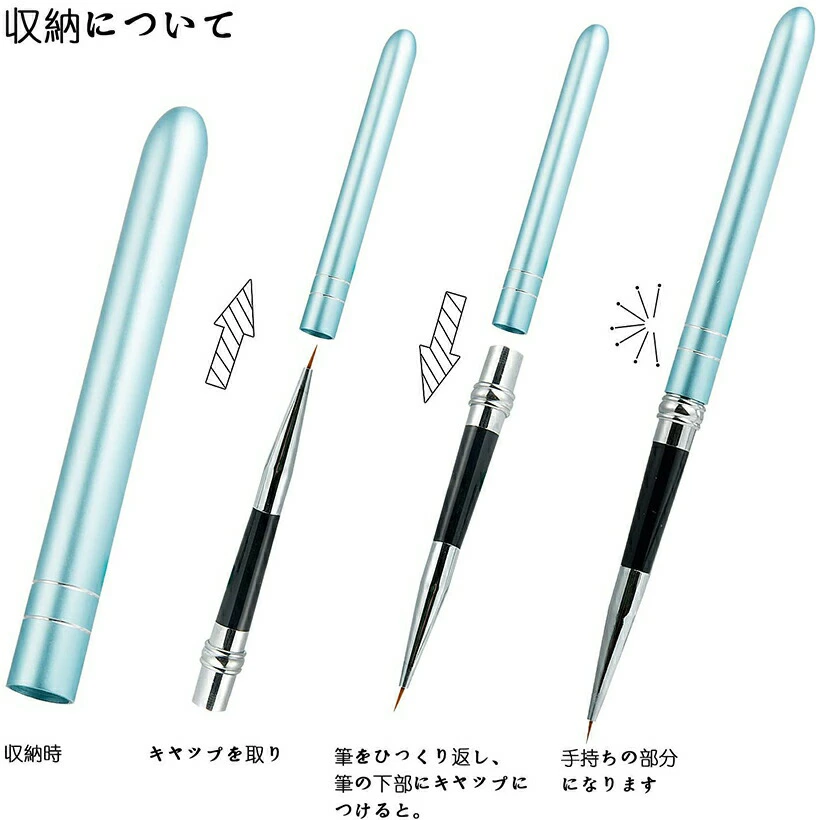 アクリルペンはアクリルパウダー使う時にとても便利で、UVジェルペンはジェルネイルの着色と塗装に向いています。ラウンドヘッドブラシペンは模様を描いたり着色後に爪の端まで綺麗に塗ったりすることができます。