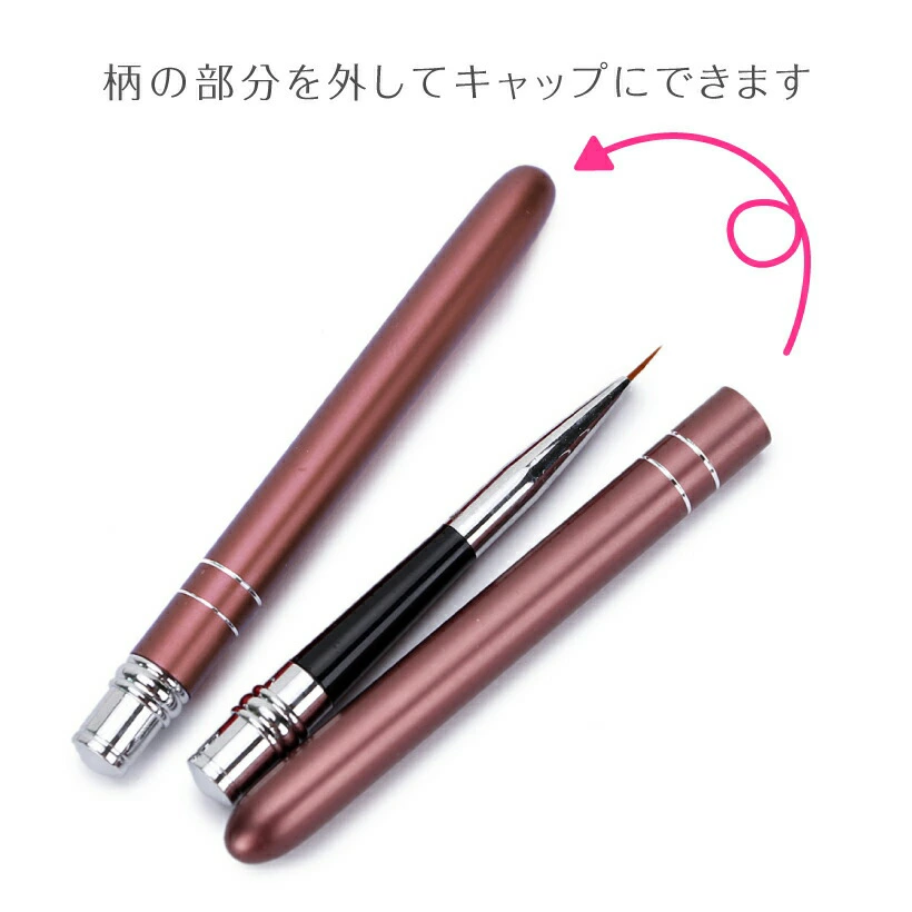 アルミ製のキャップは光を通さず、キッチンペーパー等で軽く拭く程度で後片付けが終了します。ナイロン製で適度な硬さの毛質なので固めのジェルでも使いやすく、初心者にも扱いやすいアイテムです。キャップ部分はカラフルなカラー展開で、使いたい筆が一目で見分けられます。