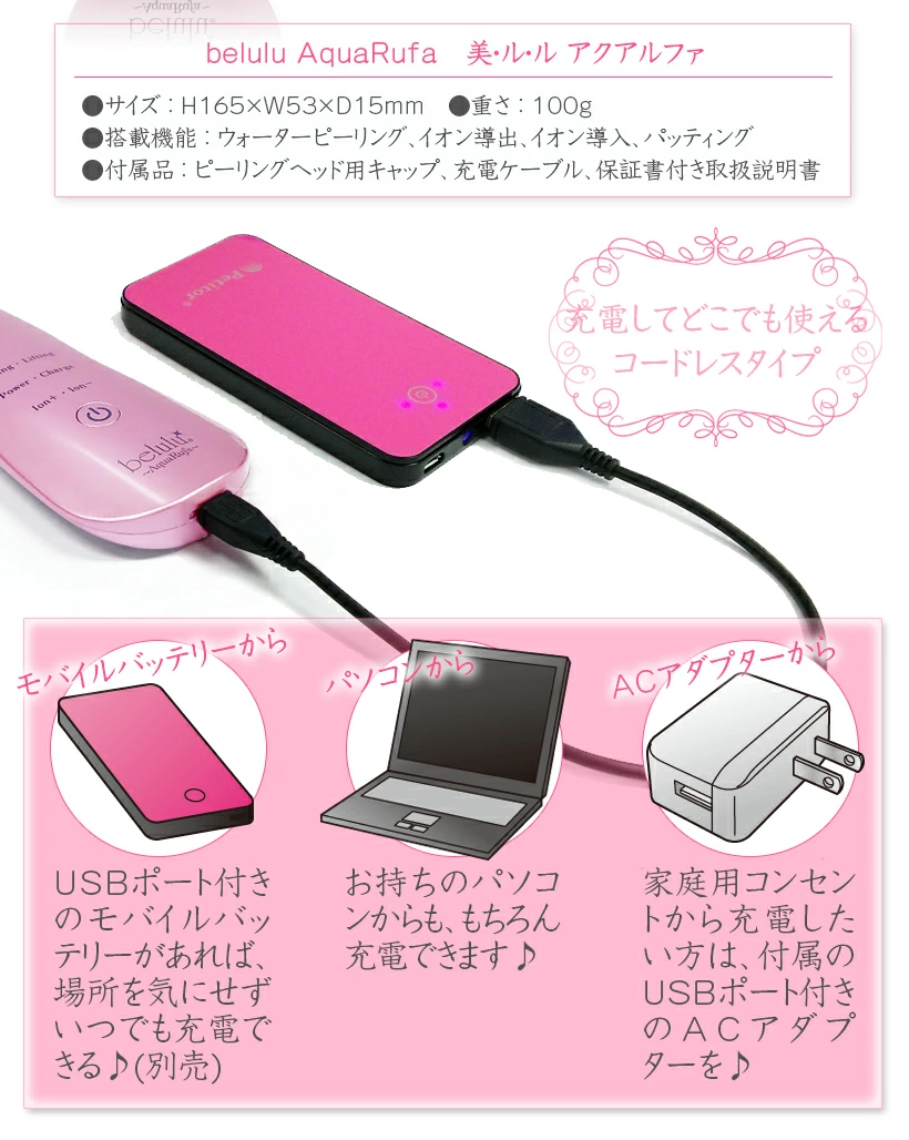 ウォーターピーリングとパッティングに加え、イオン導出&イオン導入が搭載され