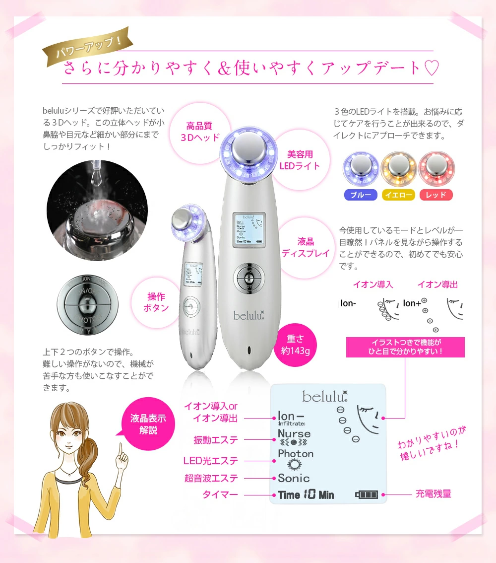 セット内容 | NEW belulu classy 本体 USB式アダプター USBケーブル 保証書つき取扱説明書 |